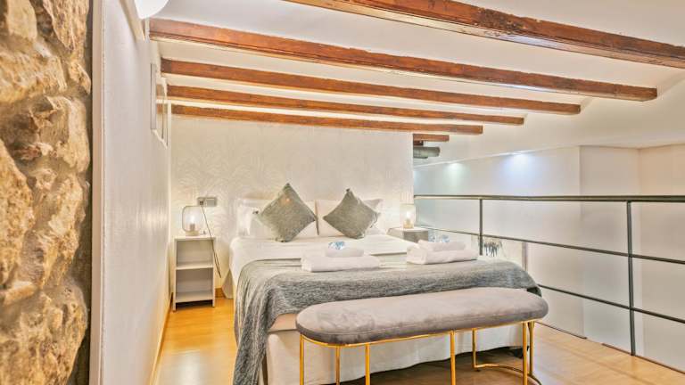 Das klimatisierte Apartment im Alcam Loft Grassot verfügt über ein separates Schlafzimmer, ein gemütliches Wohnzimmer und eine voll ausgestattete Küche mit Kühlschrank und Geschirrspüler. Das moderne Badezimmer bietet Komfort und Bequemlichkeit. Handtücher und Bettwäsche werden gestellt, um Ihren Aufenthalt so angenehm wie möglich zu gestalten.