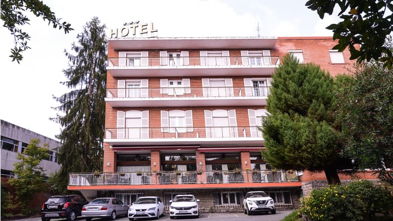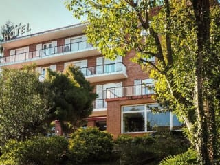 Das Hotel Alcázar befindet sich im Zentrum von Irún und ist von Bäumen und einem charmanten Garten umgeben. Es liegt in der Nähe der Ringstraße der Stadt und bietet eine gute Anbindung an den öffentlichen Nahverkehr. Der Bahnhof und der Busbahnhof sind zu Fuß in 15 Minuten erreichbar. Der Bahnhof Hendaye, direkt hinter der französischen Grenze, ist nur 1,5 km entfernt. Mit dem Auto erreichen Sie San Sebastián in nur 20 Minuten. Die Strände von Hendaye und Hondarribia sind ebenfalls nur eine kurze Autofahrt entfernt. Die Umgebung bietet viele Wander- und Radwege, und das Hotel bietet Abstellmöglichkeiten für Fahrräder.