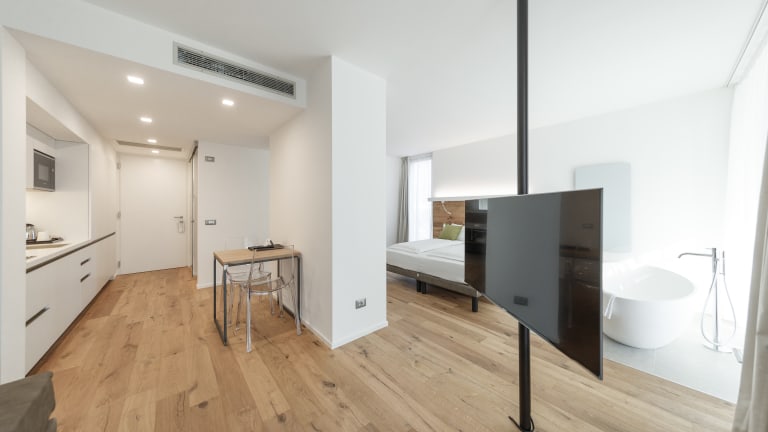 Der ideale Ort für einen Urlaub mitten in der Natur, fernab vom Verkehr. Dazu moderne und komfortable Räumlichkeiten sowie eine wunderbare Frühstücksterrasse mit Blick auf Weinberge und Apfelhaine… All das in unmittelbarer Nähe zum Ortszentrum von Arco. Somit ist das Alea Garda Lake Suite der ideale Ausgangspunkt für gemütliche Wanderungen, spannende Kletterpartien und Bike-Touren in den Bergen. Genauso wohltuend sind besondere Entspannungsmomente im Schwimmbad des Hauses. Gästen steht ein Parkplatz (kostenlos) inklusive E-Ladestation und ein videoüberwachtes Bike-Depot zur Verfügung. Darüber hinaus gibt es einen Fahrrad-Verleih.