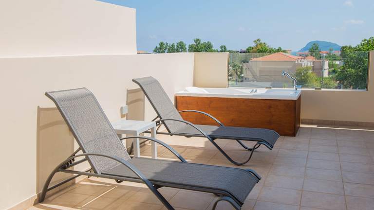 Das Hotel verfügt über 175 Zimmer, die alle mit einer Klimaanlage, einem Safe und einer Kochnische ausgestattet sind. Von Balkon oder Terrasse aus können die Gäste den Meerblick genießen. Die Badezimmer bieten eine Dusche oder eine Badewanne und einen Haartrockner. Rollstuhlgerechte Zimmer sind ebenfalls verfügbar.