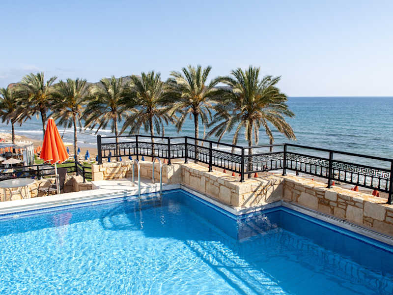 Das Alexandra Beach Hotel liegt direkt am Strand in Nea Kydonia und bietet damit eine ideale Lage für einen entspannten Badeurlaub. In der Umgebung finden sich auch beliebte Strände wie Agia Marina, Stalos und Platanias, die einen Besuch wert sind. Der internationale Flughafen Chania ist nur 23 km entfernt und bietet eine gute Anbindung für Reisende.