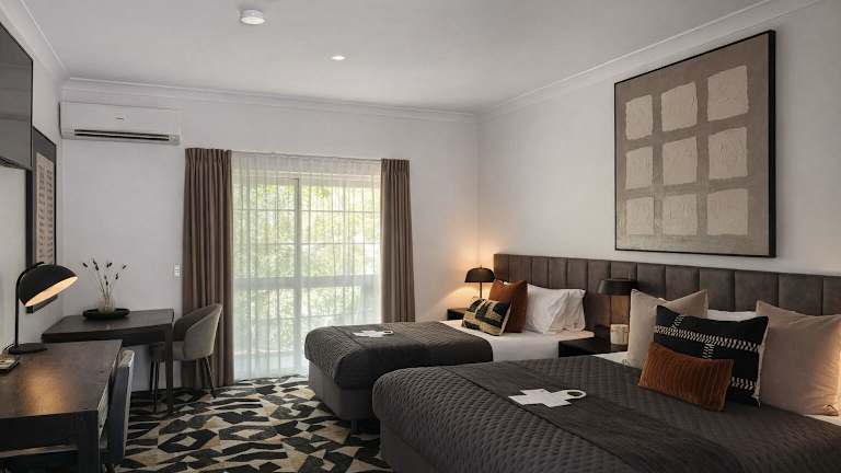 Die klimatisierten Zimmer im Alexandra Hills Hotel sind modern und komfortabel eingerichtet. Jedes Zimmer verfügt über einen 42-Zoll-Flachbild-TV, Tee- und Kaffeezubehör, einen Kühlschrank und einen Wasserkocher. Das eigene Badezimmer ist mit einem Haartrockner und einer Dusche ausgestattet.