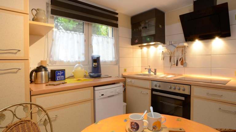 Die Ferienwohnung ist ausgestattet mit 1 Schlafzimmer, 1 Badezimmer, einer voll ausgestatteten Küche, einem Flachbild-TV sowie einer Terrasse mit Blick auf den Garten. Bettwäsche und Handtücher werden bereitgestellt.