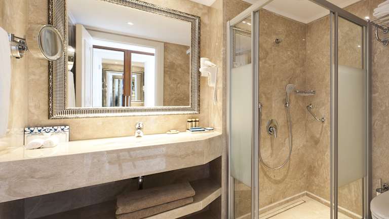 An jede Wohneinheit ist ein Badezimmer angeschlossen. Zur Basisausstattung zählen eine Minibar und ein Safe.