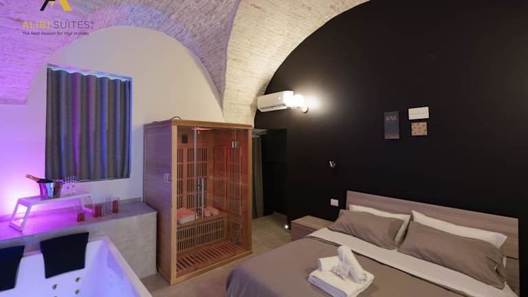 Die Alibi Suites Suite Fieramosca Spa & Relax bietet eine Unterkunft mit einem Whirlpool. Die Ferienwohnung ist klimatisiert und verfügt über ein Schlafzimmer, ein Wohnzimmer und eine voll ausgestattete Küche. Zum Angebot gehören kostenloses WLAN und eine chemische Reinigung.