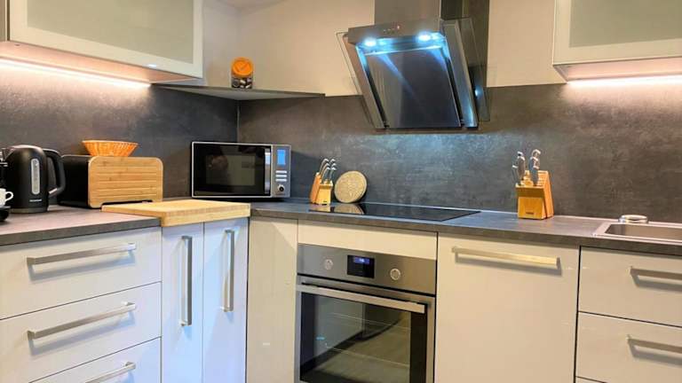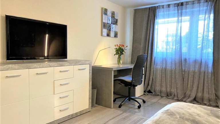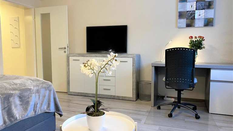 Das Apartment verfügt über ein Schlafzimmer, einen Flachbild-Sat-TV, eine ausgestattete Küche mit Kühlschrank und Geschirrspüler, eine Waschmaschine und ein Badezimmer mit Dusche. Handtücher und Bettwäsche werden gestellt. WLAN ist kostenfrei verfügbar.