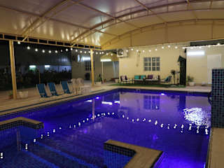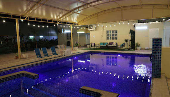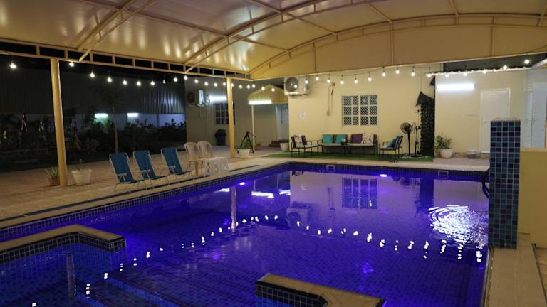 Das Aljood Resort bietet geräumige und komfortable Unterkünfte mit einem eigenen Pool, einem schönen Garten und kostenfreien Privatparkplätzen. Das Ferienhaus ist voll klimatisiert und verfügt über 3 Schlafzimmer, ein großes Wohnzimmer und eine voll ausgestattete Küche mit Kühlschrank und Wasserkocher. Es gibt auch 4 Badezimmer mit Dusche und Haartrockner. Für Unterhaltung sorgt ein Flachbild-TV.