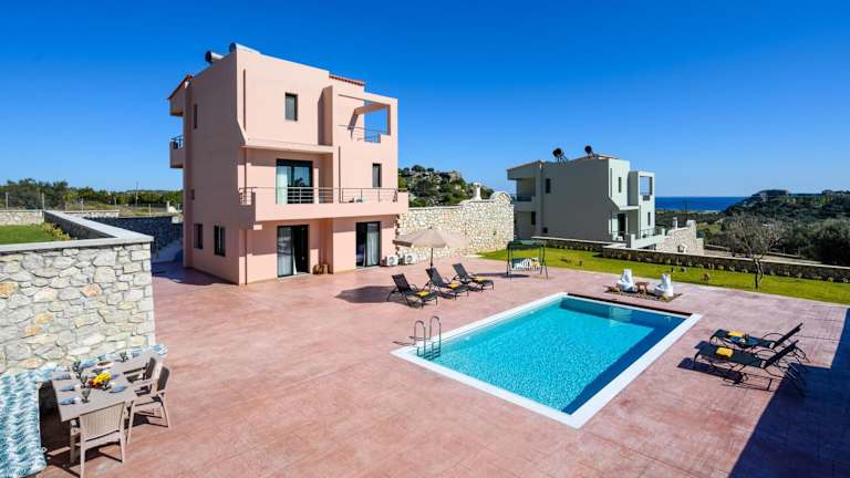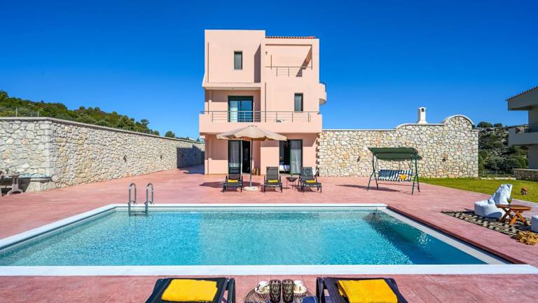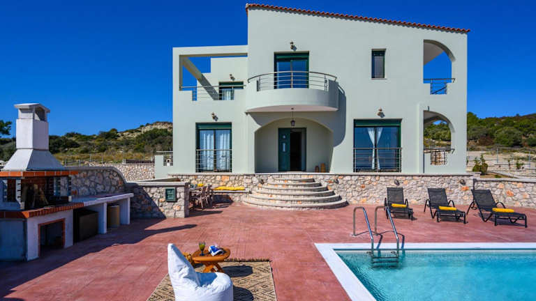 Alki Slow Living Villas bietet eine einladende Unterkunft mit kostenfreiem WLAN, Klimaanlage und Zugang zu einem Garten mit einem Außenpool. Die Villa verfügt über eine Terrasse mit Meerblick sowie über moderne Annehmlichkeiten.