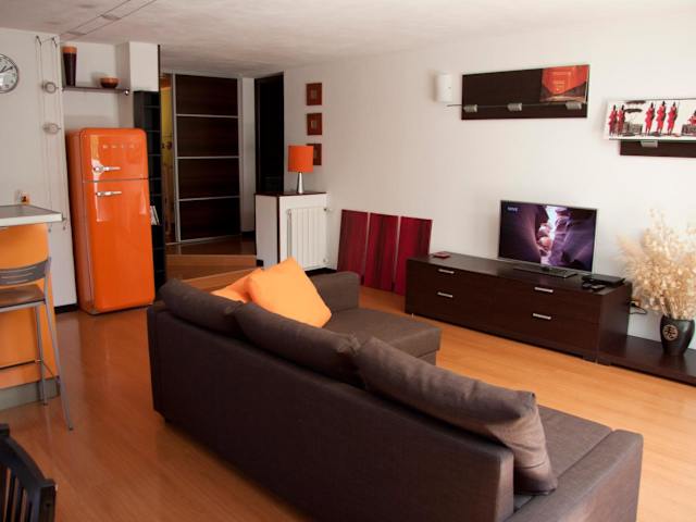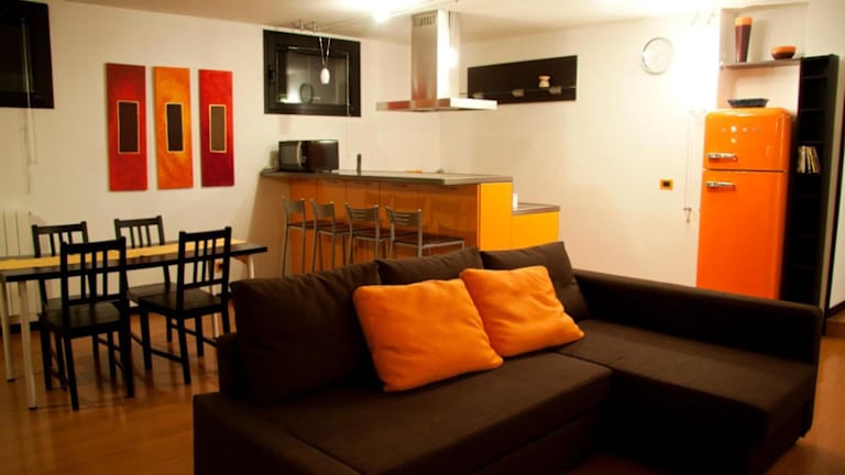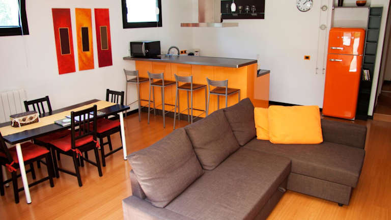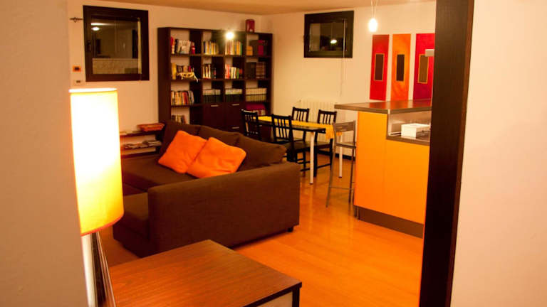 Die Ferienwohnung besteht aus einem Schlafzimmer, einem Wohnzimmer und einer voll ausgestatteten Küche, die über einen Kühlschrank und eine Kaffeemaschine verfügt. Das Badezimmer bietet ein Bidet und eine Dusche. Zur Ausstattung gehören auch Handtücher und Bettwäsche. Gästen steht ein Grill zur Verfügung.