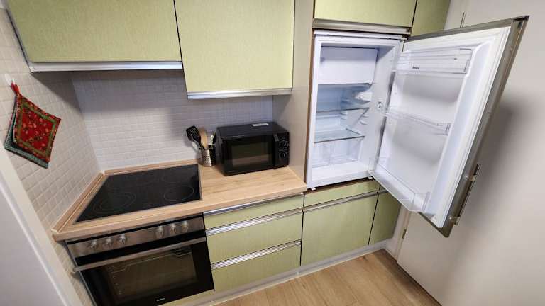 Die Ferienwohnung besteht aus einem Schlafzimmer, einem Wohnzimmer und einer gut ausgestatteten Küche mit Kühlschrank und Geschirrspüler. Ein Flachbild-TV sowie ein Badezimmer mit Dusche sind vorhanden. Handtücher und Bettwäsche werden bereitgestellt.