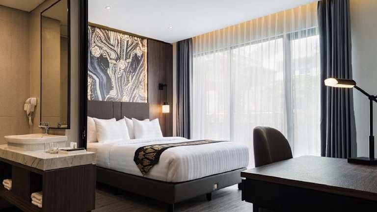 Ein Restaurant vor Ort serviert indonesische Küche. Das Frühstück wird in Buffetform mit amerikanischen oder asiatischen Optionen angeboten. Essenslieferungen in die Unterkunft sind ebenfalls möglich.