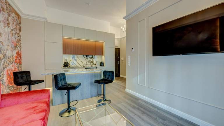 Die Apartments sind mit einem Sitzbereich, einem Satelliten-Flachbild-TV, einer voll ausgestatteten Küchenzeile, einem Kühlschrank, einem Geschirrspüler sowie einem eigenen Badezimmer mit Dusche und kostenlosen Pflegeprodukten ausgestattet. Weiterhin verfügen die Zimmer über eine Veranda oder einen Patio mit Stadtblick sowie über einen Ofen, eine Herdplatte, eine Kaffeemaschine und einen Wasserkocher.