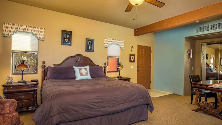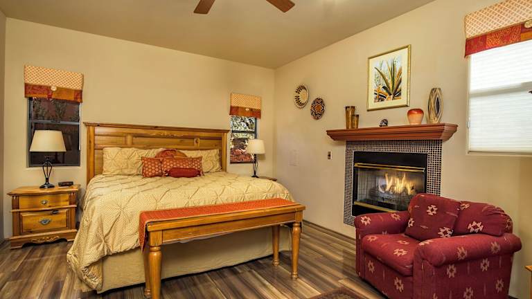 Die klimatisierten Zimmer im Alma De Sedona Inn bieten Ihnen einen komfortablen Rückzugsort mit Terrasse oder Balkon, von dem aus Sie die wunderschöne Aussicht genießen können. Jedes Zimmer verfügt über einen gemütlichen Sitzbereich mit einem Kamin und einen Flachbild-Kabel-TV. Das eigene Badezimmer ist mit einer Whirlpool-Badewanne ausgestattet, in der Sie entspannen können.