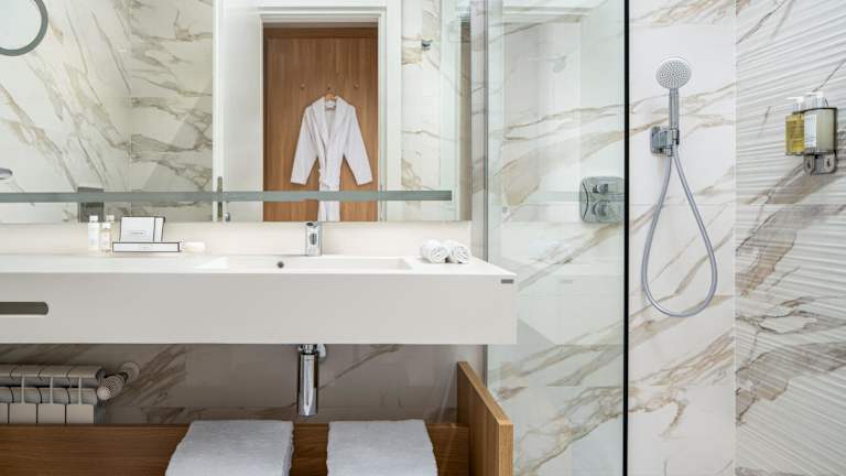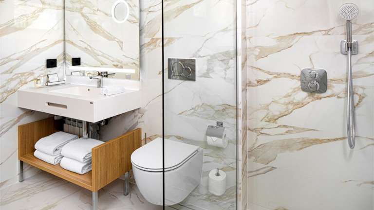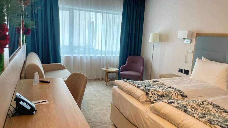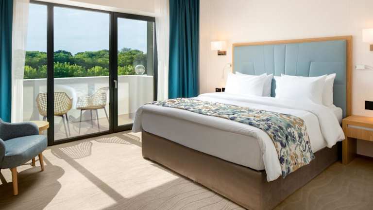 Die Zimmer sind mit Klimaanlage, Heizung, einem Flachbildfernseher und einem eigenen Badezimmer ausgestattet. Viele Zimmer bieten Zugang zu einem Balkon oder einer Terrasse. Zusätzliche Annehmlichkeiten sind ein Safe, eine Minibar, ein Schreibtisch sowie eine Tee-/Kaffeemaschine. Zu den weiteren Ausstattungen gehören Hausschuhe und Kosmetikartikel im Badezimmer.
