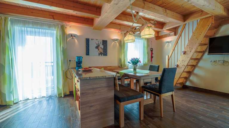 Das Almchalet Sonne bietet einen angenehmen Aufenthalt mit Blick auf den Garten und ist mit einem Balkon ausgestattet. Die Unterkunft umfasst zwei Schlafzimmer und zwei Badezimmer sowie moderne Annehmlichkeiten.