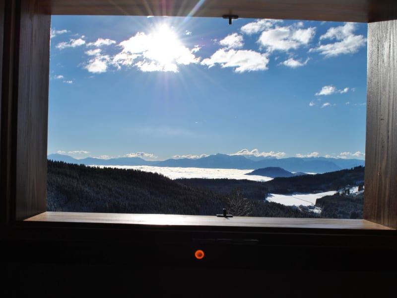 In ihr befindet sich im unteren Stock ein wohlig warmer Kachelofen mit dem das Haus beheizt wird. Er steht in einem geräumigen Wohnraum, mit rustikalem Essbereich, voll ausgestatteter Küche und einem kuscheligem Doppelbett. Ein freundlich, helles Badezimmer mit Dusche und WC ist von dort aus zu erreichen. Im ersten Stock haben Sie den besten Ausblick und können nur staunen, wenn im Glantal das Nebelmeer steht und dahinter die Karnischen Alpen empor ragen! Hier befindet sich ein Doppelbett und ein Einzelbett. Von außen ist noch das "Herren-WC" zu erreichen - eine zusätzliche Toilette ...und das in einer Almhütte!