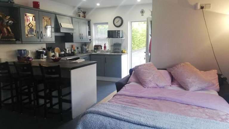 Die Ferienwohnung bietet ein Schlafzimmer und ein Badezimmer. Zur Ausstattung gehören Bettwäsche, Handtücher, ein Flachbild-TV mit Satellitenkanälen, ein Essbereich und eine voll ausgestattete Küche. Zudem gibt es eine Terrasse mit Blick auf den Garten.