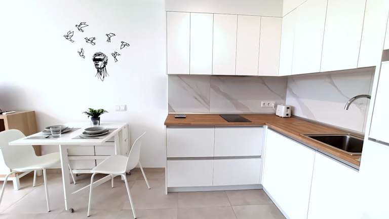 Die Ferienwohnung umfasst 1 Schlafzimmer, ein Badezimmer mit Dusche und ist mit einem Flachbild-TV mit Satellitenkanälen, einer gut ausgestatteten Küche mit Kühlschrank und Mikrowelle sowie kostenlosen Handtüchern und Bettwäsche ausgestattet. Die Zimmer sind schallisoliert und bieten Heizung sowie WLAN in allen Bereichen.