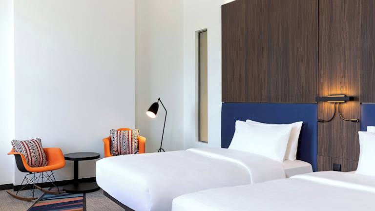 Das Aloft Al Mina, Dubai in Dubai bietet seinen Gästen eine moderne Unterkunft mit einer Vielzahl von Annehmlichkeiten, darunter ein Außenpool, ein Fitnesscenter und kostenfreies WLAN. Das Hotel liegt in der Nähe von Sehenswürdigkeiten wie der Großen Moschee und dem Dubai World Trade Centre. Die Zimmer sind klimatisiert und verfügen über eine Minibar, einen Safe und einen eigenen Balkon mit Stadtblick. Das Hotel bietet auch ein Restaurant, in dem Sie ein köstliches Frühstück und andere Mahlzeiten genießen können. Das Aloft Al Mina, Dubai ist die perfekte Wahl für Ihren Aufenthalt in Dubai.