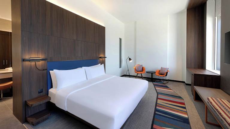 Die Zimmer im Aloft Al Mina, Dubai sind modern und komfortabel eingerichtet. Jedes Zimmer verfügt über eine Klimaanlage, eine Minibar, einen Schreibtisch und einen Flachbildfernseher. Ein Safe und kostenfreies WLAN sind ebenfalls vorhanden. Einige Zimmer bieten einen eigenen Balkon mit Blick auf die Stadt. Die Badezimmer sind mit einer Dusche, einem Haartrockner und einem Kosmetikspiegel ausgestattet. Rollstuhlgerechte Zimmer mit barrierefreien Badezimmern sind auf Anfrage erhältlich.