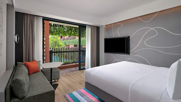 Alle 175 Zimmer sind clever gestaltet, mit modernen Annehmlichkeiten, technikfreundlicher Ausstattung und dem unverwechselbaren, farbenfrohen Aloft-Stil. Jedes Zimmer bietet einen 55-Zoll-Smart-TV, schnelles WLAN, bequeme Plattformbetten und Bäder mit begehbaren Duschen. • Aloft Room – Stilvoll und funktional, ideal für Arbeit und Freizeit. • Aloft Room, Poolblick – Genießen Sie den Blick auf den funkelnden Außenpool „Splash“ direkt vom Fenster. • Aloft Room, Gartenblick – Ein gemütlicher Rückzugsort mit erfrischendem Blick ins Grüne. • Aloft Room, Poolterrasse – Direkter Zugang zum Poolbereich von Ihrer privaten Terrasse. • Aloft Room, Gartenterrasse – Mit privater Terrasse und Schaukel, umgeben von tropischen Gärten.