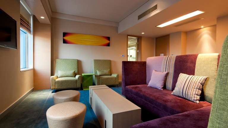 Das Q-box Hotel Zhengzhou liegt an der Kreuzung der East Jinshui Road und der Xinyi Road im neuen Bezirk Zhengdong. Es befindet sich direkt an der U-Bahn-Linie 5 und ist vom Xintian 360 Shopping Plaza getrennt. Die Zhengkai Avenue und der Beijing-Hong Kong-Macao Expressway sind nur 8 Kilometer entfernt und bieten eine gute Anbindung an den öffentlichen Verkehr.