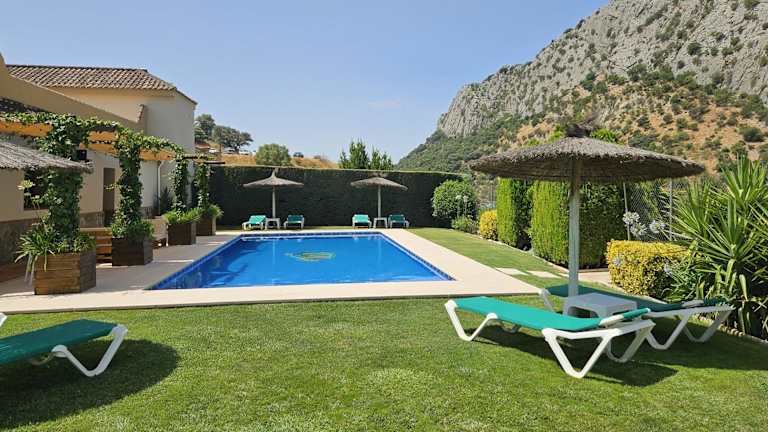 Das Alojamiento Rural Casitas Cueva del Gato in Benaoján ist ein charmantes Ferienhaus, das Ihnen einen entspannten und komfortablen Aufenthalt bietet. Mit einem Außenpool und Klimaanlage ausgestattet, können Sie hier die warmen spanischen Tage genießen. Das Ferienhaus bietet Platz für bis zu 10 Personen und verfügt über 5 Schlafzimmer, 2 Badezimmer, eine voll ausgestattete Küche und eine Terrasse mit herrlichem Bergblick. Mit kostenfreien Privatparkplätzen und einer Grillmöglichkeit ist alles für einen gelungenen Aufenthalt vorhanden.