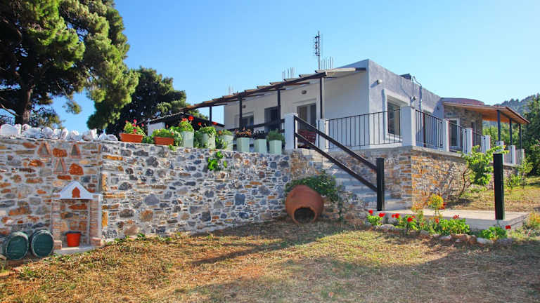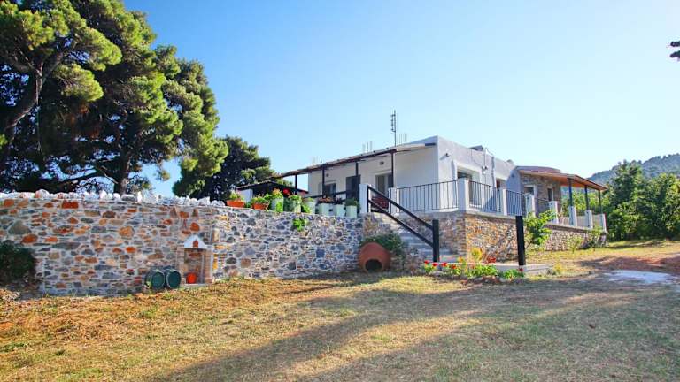 Das Ferienhaus Aloni Villa auf der Insel Skopelos ist ein perfektes Ziel für einen erholsamen Urlaub. Das klimatisierte Haus bietet Ihnen eine gemütliche Terrasse und kostenfreie Privatparkplätze. In dem geschmackvoll eingerichteten Ferienhaus finden Sie ein Schlafzimmer, ein Badezimmer mit Badewanne oder Dusche sowie einen Flachbild-TV. Die voll ausgestattete Küche und der Essbereich sorgen dafür, dass Sie sich wie zu Hause fühlen. Ein Highlight ist der Grill, den Sie nutzen können, um köstliche Mahlzeiten im Freien zuzubereiten. Darüber hinaus stehen Ihnen kostenfreie Leihfahrräder zur Verfügung, um die Umgebung zu erkunden. Die Lage des Ferienhauses ist ideal für Radtouren, und sowohl die Stadt Skopelos als auch der Hafen sind nur 5 km entfernt. Der nächste Strand ist ebenfalls schnell erreichbar, nur 4,5 km entfernt.