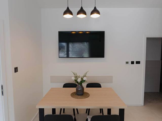 Die Ferienwohnung ist klimatisiert und umfasst zwei Schlafzimmer. Zur weiteren Ausstattung gehören ein Flachbild-TV, ein Essbereich sowie eine Küche mit modernen Geräten. Es wird Wert auf eine Nichtraucherumgebung gelegt.