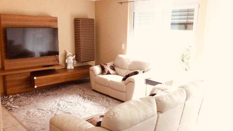 Das Ferienhaus umfasst drei Schlafzimmer, ein Wohnzimmer sowie eine gut ausgestattete Küche, die mit einem Kühlschrank und einem Geschirrspüler ausgestattet ist. Es gibt zwei Badezimmer mit Duschen. Weitere Annehmlichkeiten umfassen einen Flachbild-TV, eine Terrasse und einen Balkon. Handtücher und Bettwäsche werden bereitgestellt.
