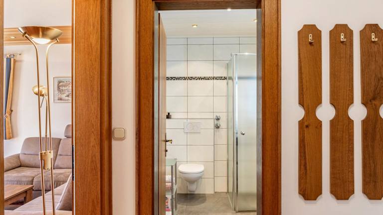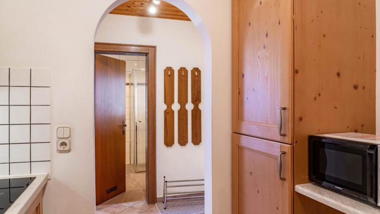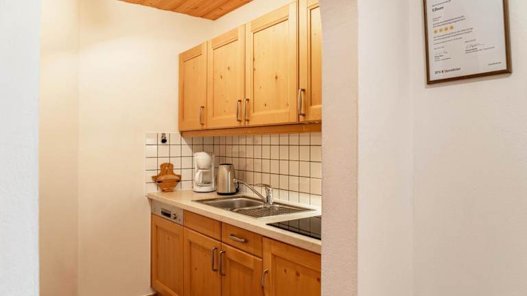 Die Ferienwohnung verfügt über ein Schlafzimmer, ein Badezimmer mit Dusche sowie eine gut ausgestattete Küche, die mit einem Kühlschrank und einem Geschirrspüler ausgerüstet ist. Zur technischen Ausstattung gehört ein TV mit Kabelkanälen. Handtücher und Bettwäsche werden bereitgestellt.