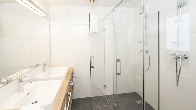Chalet ALPENGLÜCK Chalet mit 350 m² Wohnfläche für 18 Personen 7 Schlafzimmer mit Doppelbetten - 5 Schlafzimmer verfügen noch über ein Waschbecken 1 Schlafzimmer mit Doppelbett und Stockbett 1 Badezimmer mit 3er Dusche und WC im 1. OG 1 Badezimmer mit 2er Dusche und WC im 2. OG 3 WC separat im UG Chalet ALPENHOAMTL Chalet mit 170 m² Wohnfläche für 10 Personen 1 Schlafzimmer mit Doppelbett im OG 1 Schlafzimmer mit Doppelbett und Stockbett im OG 1 Schlafzimmer mit Doppelbett und ausziehbarer Couch für 2 Personen im DG 1 Badezimmer mit Dusche und WC im DG 1 WC separat im OG 1 Badezimmer mit Doppeldusche und Doppelwaschbecken im OG