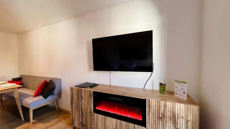 Die Ferienwohnung verfügt über einen Balkon mit Bergblick, ein Schlafzimmer, ein Wohnzimmer, einen Satelliten-Flachbild-TV sowie eine gut ausgestattete Küche. Zudem gibt es ein Badezimmer mit Dusche und Badewanne. Handtücher und Bettwäsche werden bereitgestellt.