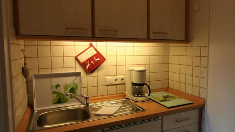Die Ferienwohnung ist ausgestattet mit einem Schlafzimmer, einer Küchenzeile, einem Kühlschrank, einem Flachbild-TV, einem Sitzbereich und einem Badezimmer mit Dusche.