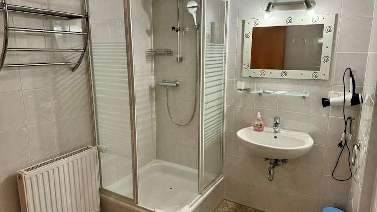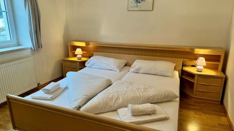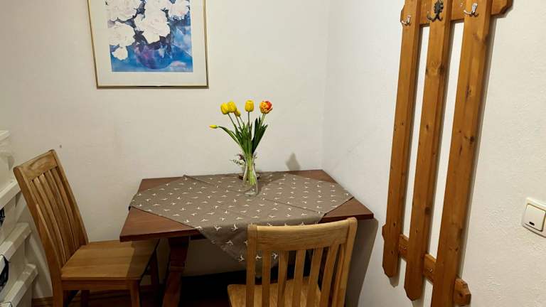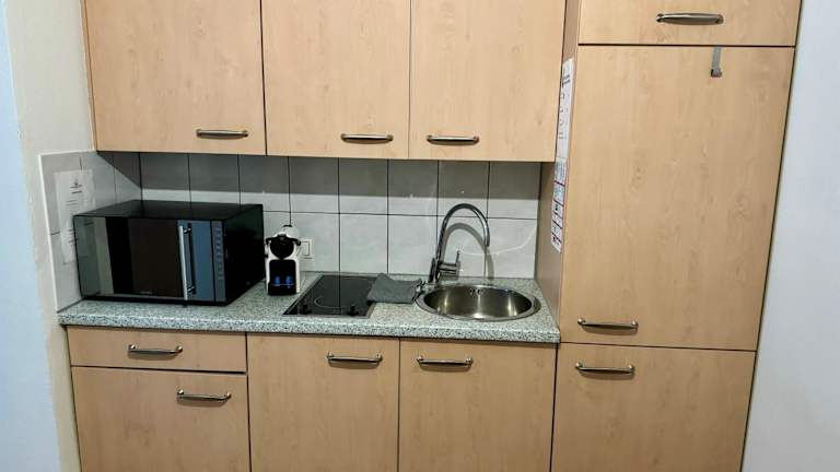 Die Ferienwohnung umfasst 1 Schlafzimmer, eine voll ausgestattete Küche mit Kühlschrank und Herdplatte sowie ein Badezimmer mit Dusche und Haartrockner. Handtücher und Bettwäsche werden bereitgestellt.
