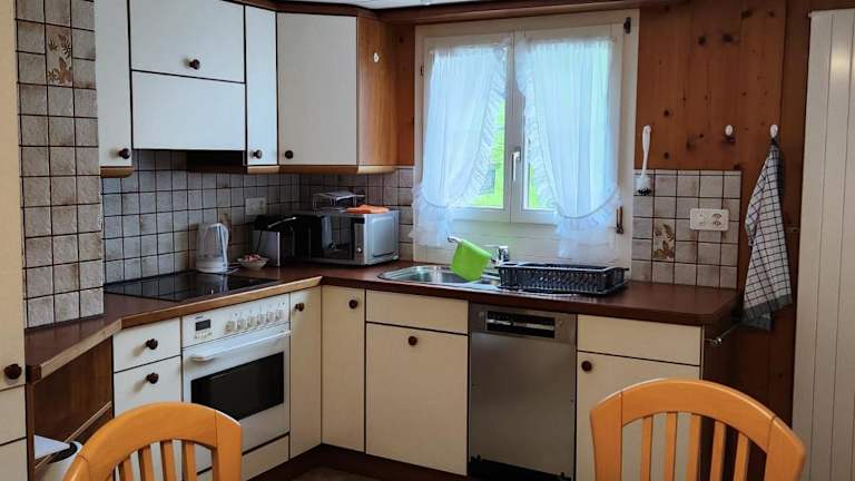 Die Ferienwohnung in Alpenperle verfügt über drei Schlafzimmer, ein Wohnzimmer, eine gut ausgestattete Küche sowie ein Badezimmer mit Dusche und Badewanne. Zur Ausstattung gehören ein Satelliten Flachbild-TV sowie Handtücher und Bettwäsche. Von der Unterkunft aus hat man einen schönen Blick auf die Berge und den Garten. Eine Terrasse lädt dazu ein, die Natur zu genießen.