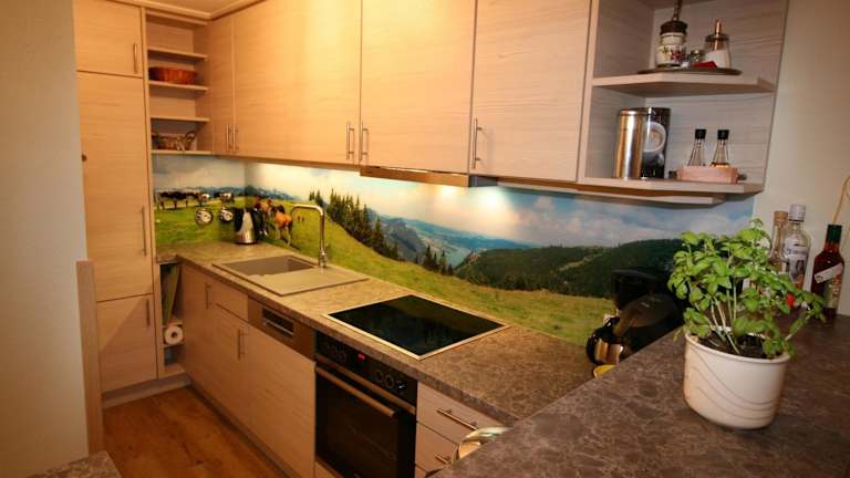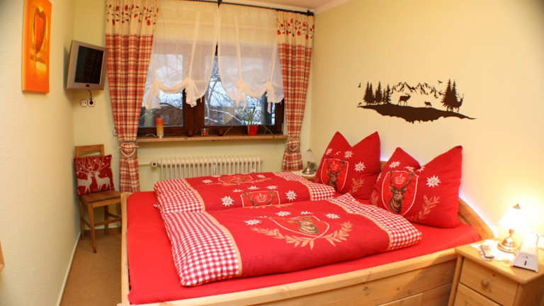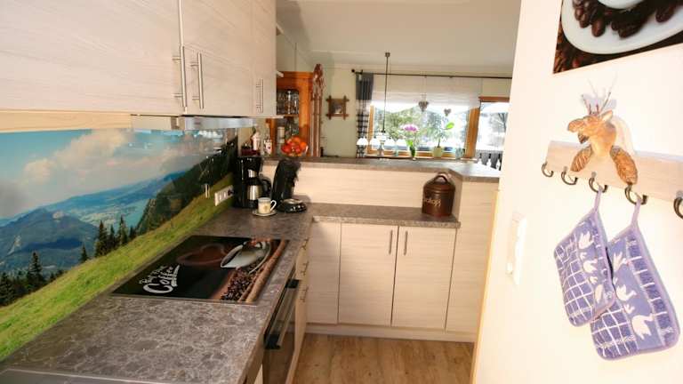 Die Zimmer sind in Form einer Ferienwohnung mit zwei Schlafzimmern und einem Badezimmer angelegt. Zur Ausstattung gehören eine voll ausgestattete Küche, ein Flachbild-TV und ein Balkon mit Bergblick.