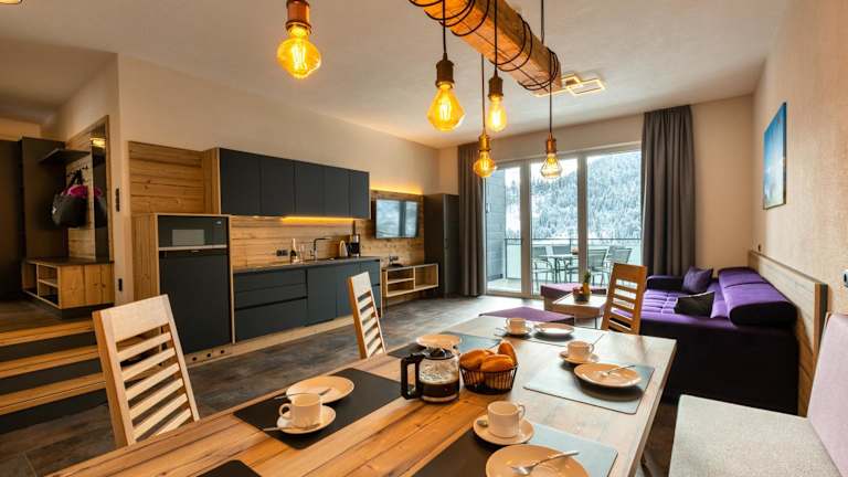 Wundervolle Appartements mitten in Serfaus. Geräumige und moderne Ausstattung mit Sauna und Balkon in allen Appartements (außer im Studio). Trampolin im Sommer für die Kinder und Tischtennisplatte. Schöne Aussicht.