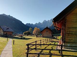 Die alpenländisch eingerichteten Holzchalets im Alpi Giulie verfügen über ein eigenes Bad und eine voll ausgestattete Küche mit Essbereich. Jedes Chalet bietet auch Sat-TV für Unterhaltung. Die gemütliche Atmosphäre und das Kaminfeuer laden zum Entspannen ein.