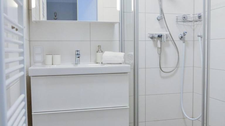 Die Ferienwohnung besteht aus 2 Schlafzimmern, einem Wohnzimmer sowie 1 Badezimmer mit Dusche und Haartrockner. Der Fernseher ist mit Satellitenkanälen ausgestattet.