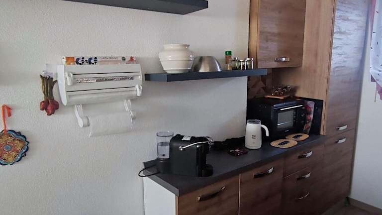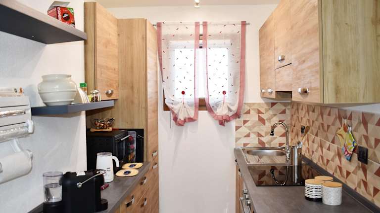 Die Ferienwohnung ist mit einem Wohnzimmer ausgestattet, das über einen TV mit Kabelkanälen verfügt. Die Küche ist voll ausgestattet mit Kühlschrank und Geschirrspüler. Es gibt ein Badezimmer mit Bidet, und zur Ausstattung gehören Bettwäsche und Handtücher.