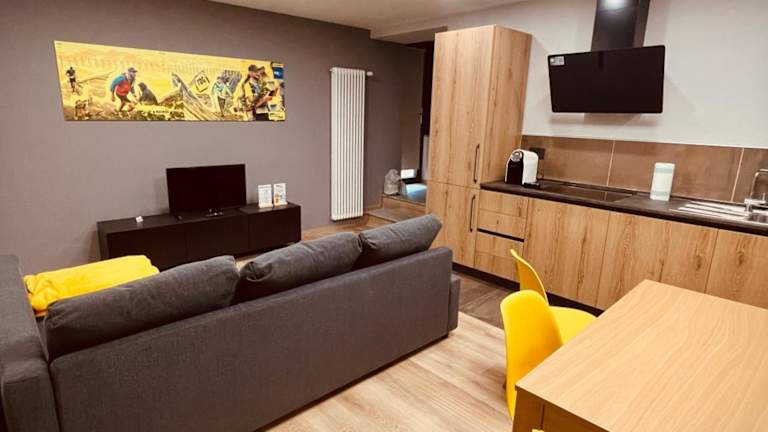 Die Ferienwohnung besteht aus einem Schlafzimmer, einem Wohnzimmer, einer voll ausgestatteten Küche mit Kühlschrank und Kaffeemaschine sowie einem Badezimmer mit Dusche und kostenlosen Pflegeprodukten. Handtücher und Bettwäsche sind ebenfalls vorhanden. Die Unterkunft ist klimatisiert.
