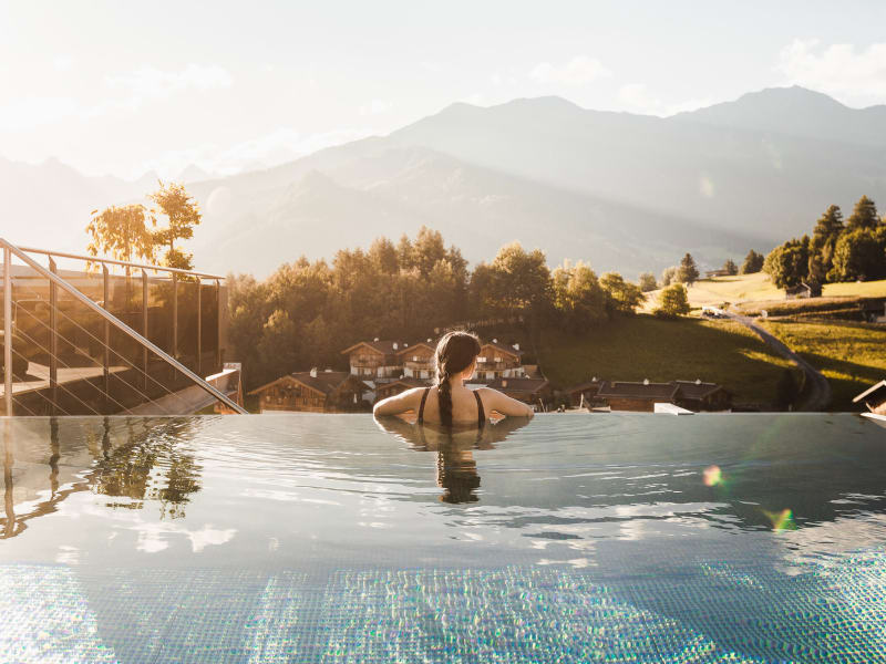 WELLNESS VOM FEINSTEN mal 3 ALPINE SPA - SCHWIMMEN UND BADEN Lichtdurchflutetes Hallenbad mit Sprudelliegen & direktem Zugang zum Garten und der Liegewiese Außen-Sauna, Outdoor-Hot-Whirlpool Relax Wohnzimmer mit Doppel-Wasserbetten für 2 Personen Relaxlounge und Ruheraum Massage und Beauty-Center Fit und Fun – Fitnessraum mit so viel Bewegung inklusive! Licht- und Luftintensives High-Tech-Cardio-Trainingscenter mit Top Geräten, Gymnastikraum ZIRBEN SPA Kräuterdampfbad, Bio-Sauna mit Pfefferminz- oder Zirbenaufguss Infrarot-Wärmekabine, Fuß-Kneippen Lader Quellwasser-Trinkbrunnen, Zirbenwald - Raum der Stille PANORAMA SKY SPA mit traumhafter Aussicht SKY-Infinity-Pool mit Dachterrasse Event-Sky-Panoramasauna 90 °C Relax-Lounge mit kuscheliger Atmosphäre und Effekt-Feuer Ratsch und Tratsch Lodge mit Vitalbar ERFRISCHEN & DUSCHEN Eisbrunnen, Alpin- Fresh und Kneipp-Wintergarten