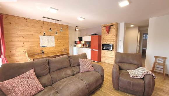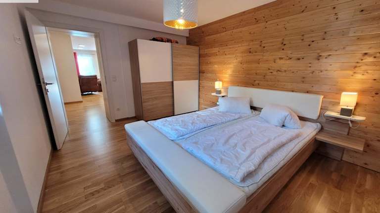 Die Ferienwohnung verfügt über drei Schlafzimmer und ein Badezimmer. Zur Ausstattung gehören Bettwäsche, Handtücher, ein Flachbild-TV mit Satellitenkanälen und eine voll ausgestattete Küche. Ein Balkon mit Bergblick und Gartenmöbel ist ebenfalls vorhanden.