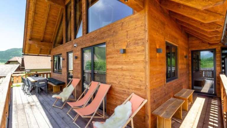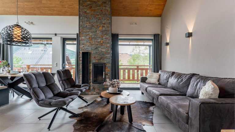 Das Chalet verfügt über vier Schlafzimmer, ein Wohnzimmer und eine voll ausgestattete Küche mit Kühlschrank und Kaffeemaschine. Es sind vier Badezimmer mit Dusche vorhanden. Handtücher und Bettwäsche werden zur Verfügung gestellt. Eine Terrasse ist ebenfalls vorhanden.