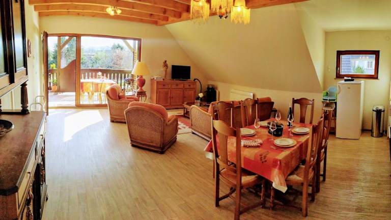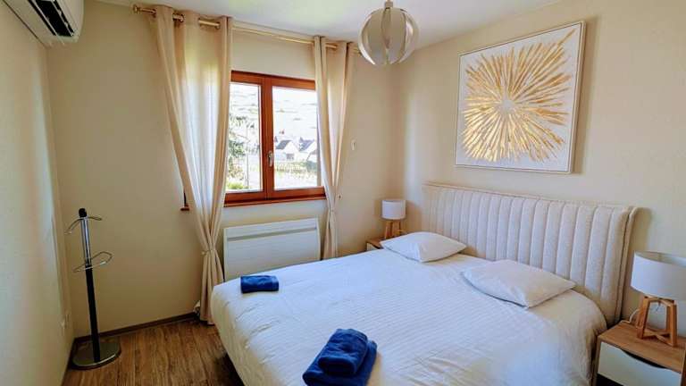 Das Alsace Appartements Meyer-Krumb befindet sich im Herzen von Sigolsheim, nur 3 km von Kaysersberg und eine kurze Fahrt von Colmar entfernt. Die Lage des Ferienhauses ist ideal, um die malerische Umgebung zu erkunden. In der Nähe finden Sie wunderschöne Weinberge und die charmante Altstadt von Kaysersberg. Colmar, eine Stadt mit historischem Charme und vielen Sehenswürdigkeiten, ist ebenfalls leicht erreichbar. Die Umgebung bietet auch zahlreiche Möglichkeiten für Outdoor-Aktivitäten wie Wandern, Radfahren und Angeln. Das Skigebiet Lac Blanc und der Golfplatz Ammerschwihr sind ebenfalls in der Nähe. Der nächste Strand, Gravière de Colmar, ist nur 10 km entfernt. Die Unterkunft bietet kostenfreie Privatparkplätze und ist gut an die Autobahn A35 und den Flughafen Bâle-Mulhouse angebunden.