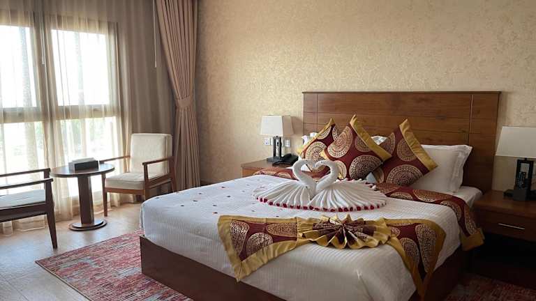 Die klimatisierten Zimmer sind mit einem Kleiderschrank, einem Wasserkocher, einem Kühlschrank, einer Minibar, einem Safe, einem Flachbild-TV sowie einem eigenen Badezimmer mit Dusche ausgestattet. Bettwäsche und Handtücher sind ebenfalls vorhanden.