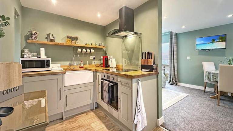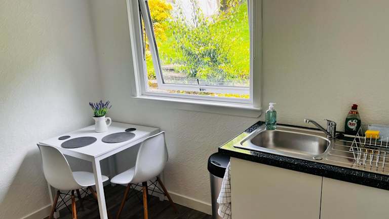 Die Unterkunft umfasst ein Schlafzimmer, einen Flachbild-TV und eine gut ausgestattete Küche mit Kühlschrank und Ofen. Zudem steht ein Bad mit Dusche zur Verfügung.