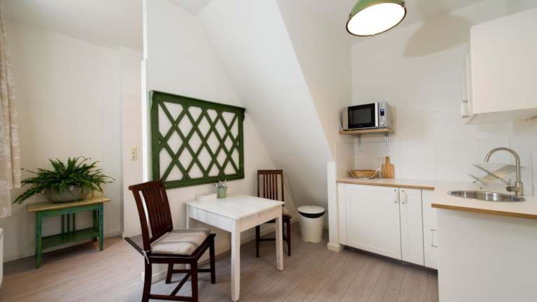 In der Unterkunft befinden sich voll ausgestattete Küchenzeilen in jeder Wohneinheit, die mit Kühlschrank, Toaster, Kaffeemaschine und Wasserkocher ausgestattet sind. Ein Esstisch ist ebenfalls vorhanden.