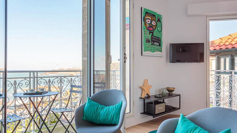 Die Unterkunft ALTAYA Apt with balcony and sea view in Biarritz bietet Übernachtungsmöglichkeiten mit Blick auf das Meer und kostenlosem WLAN. Die Ferienwohnung verfügt über ein modernes und maritimes Ambiente, ideal für einen entspannenden Aufenthalt. Check-in ist ab 16:00 Uhr möglich, während der Check-out bis 10:00 Uhr erfolgen muss.